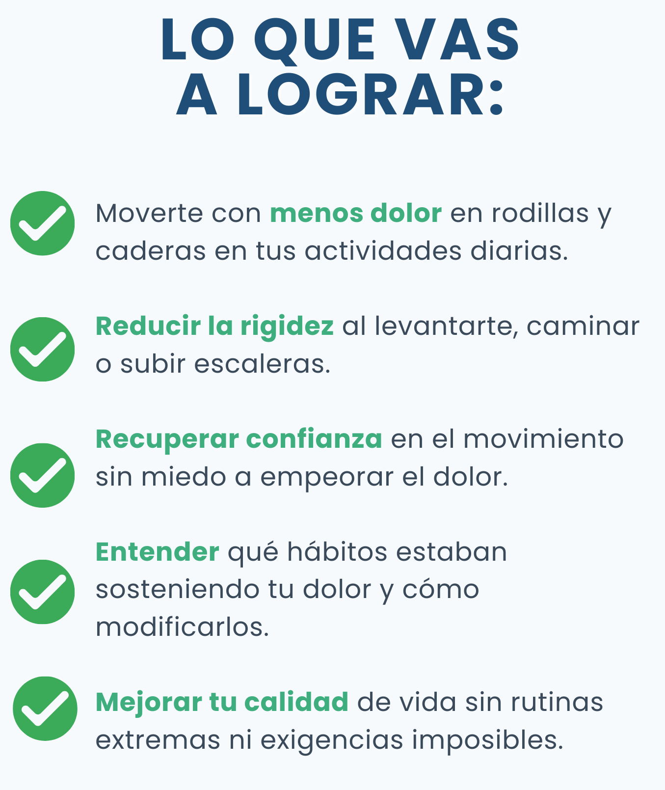 Su objetivo es ayudarte a participar activamente en el alivio de tu dolor, desde hábitos y movimiento seguro.