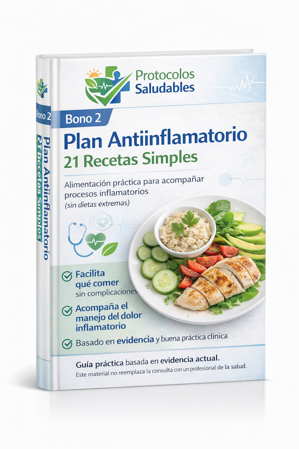 Plan nutricional práctico para acompañar procesos inflamatorios, sin dietas extremas ni restricciones innecesarias. Facilita qué comer en el día a día para apoyar el manejo del dolor desde la alimentación.